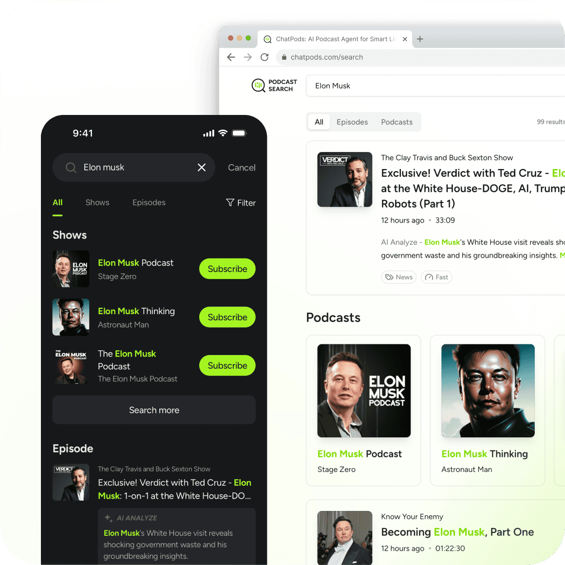 Search across millions of shows — fast, accurate, and AI-powered. Find any podcast, episode, host, or guest in seconds.